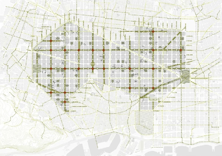 Ildefons Cerdà created the Eixample area of Barcelona in the late 1800s. The streets are wide and the corners are chamfered to let in light and air. These spacious avenues, however, turned out to be the best places for vehicles to go. The Superblock model uses a 3×3 grid of blocks and only allows local residents and delivery vehicles to drive through them at speeds of no more than 10 km/h.