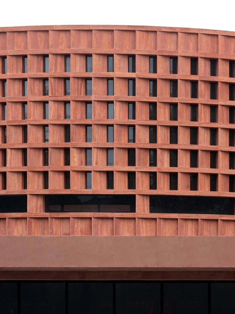 The skin is the most interesting part of the Qujiang expansion. Neri&Hu picked red travertine, which feels both old and new. It reminds me of the terracotta colors used in Chinese building from the past.