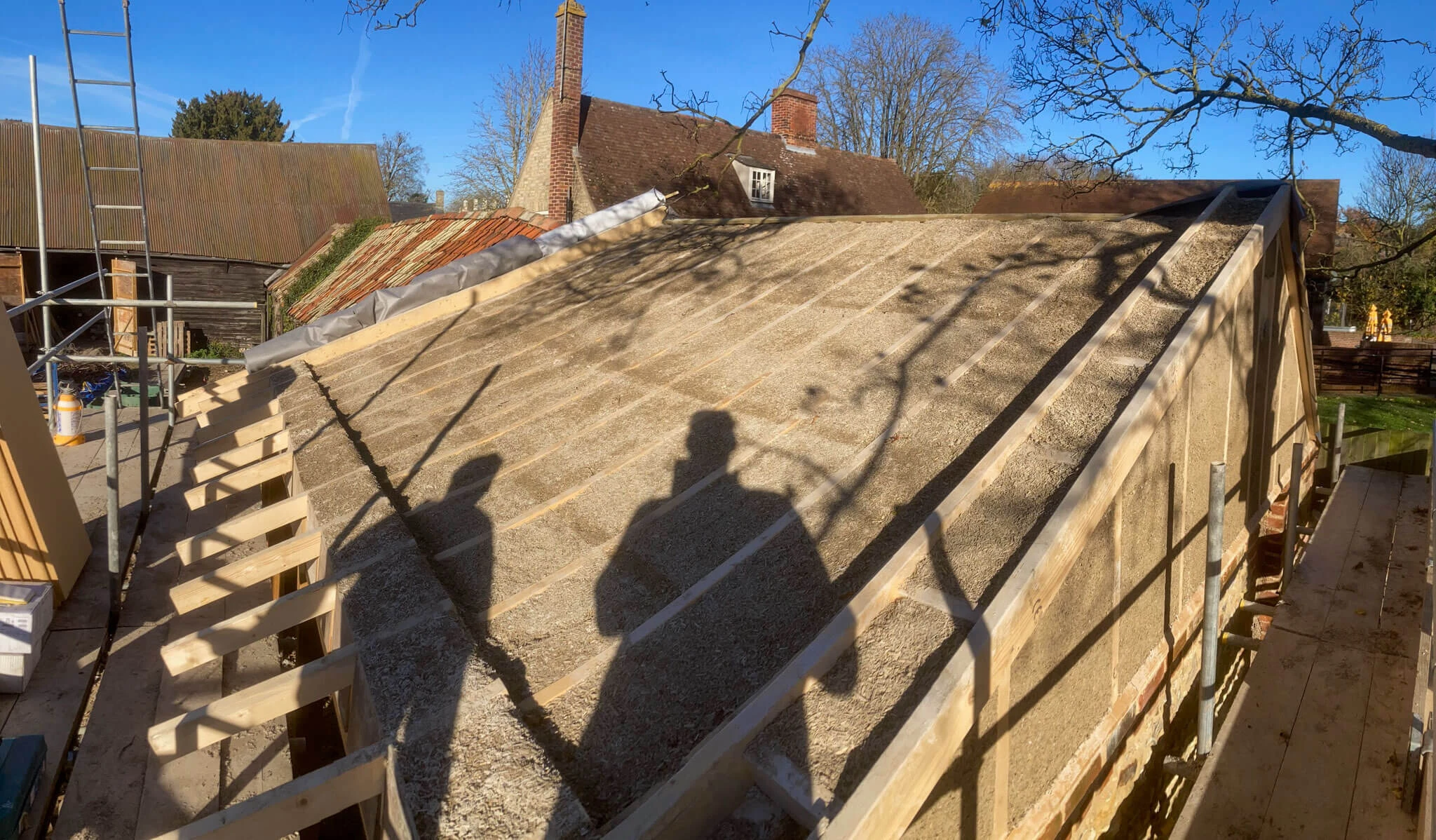 The thermal mass of hempcrete is what makes it so smart. Hempcrete holds heat, unlike lightweight insulation that just slows down heat loss. On a summer day in France, it takes in the sun’s heat and slowly releases it into the house at night.
