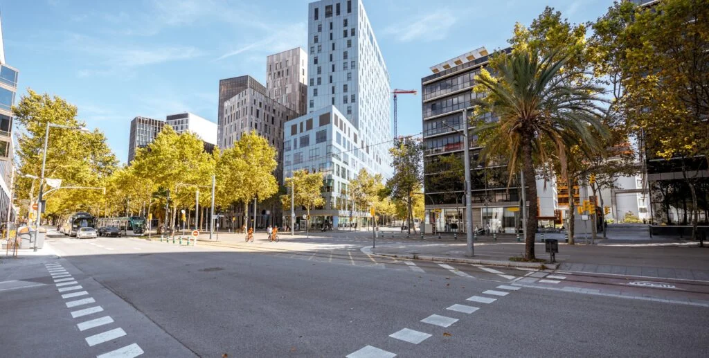 The “Superblock” model is probably the most well-known in Barcelona, Spain. By putting nine city blocks together and moving through-traffic to the edges, the internal streets are turned into “citizen spaces” with trees, playgrounds, and outdoor seating.